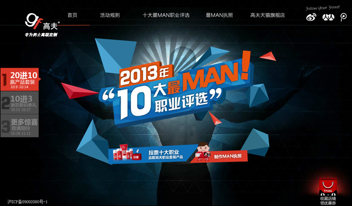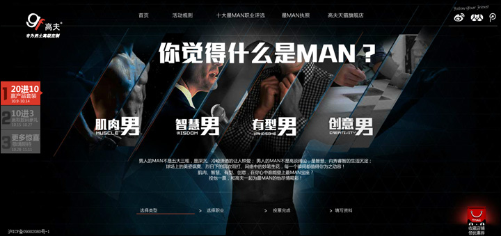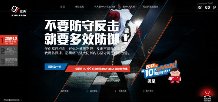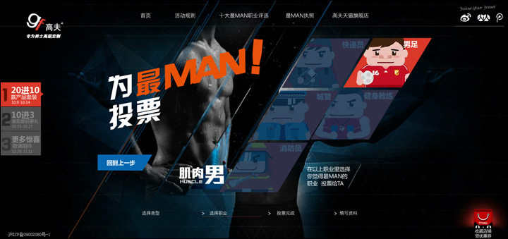 市場上唯一“專為男士高級定制”的個人護(hù)理品牌——高夫,在網(wǎng)絡(luò)打造“最MAN十大男性職業(yè)”事件,吸引消費(fèi)者關(guān)注并積極參與到活動中,在網(wǎng)絡(luò)掀起最MAN職業(yè)的話題和熱潮。